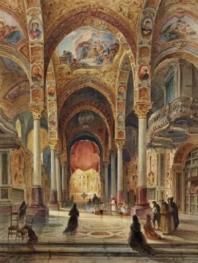Keywords: Perlberg Palermo La Martorana.jpg Chiesa Santa Maria dell'Ammiraglio also known as La Martorana Palermo Watercolours and pencil 57 x 42 8 cm http //www kettererkunst de/ < 1921 Creator Friedrich Perlberg PD-old-auto 1921 La Martorana Palermo - Inside Paintings of church interiors Friedrich Perlberg Palermo in art Images from Ketterer Kunst |