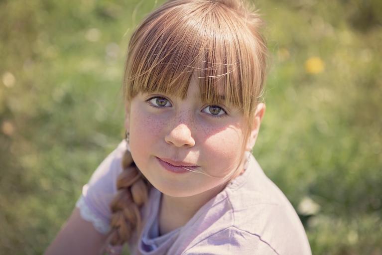 Keywords: person human child girl face pretty view out nature meadow portrait close