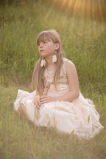 Keywords: person human child girl dress meadow flute out nature sunlight lighting portrait