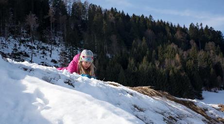 Keywords: person human child girl cap winter snow out sunshine nice weather nature
