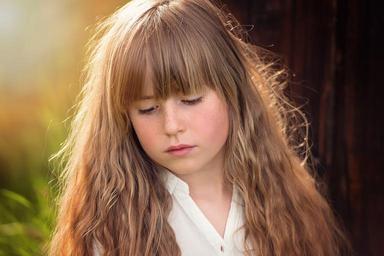 Keywords: person human female girl blond long hair face lighting out portrait close