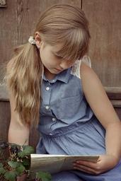Keywords: person human female girl long hair letters read portrait