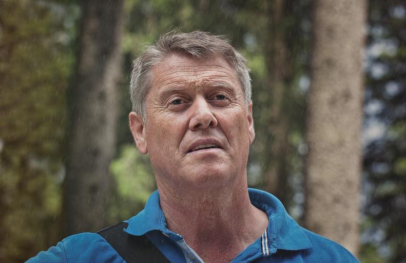 Keywords: person human man male forest nature rain rainy day weather mood portrait close