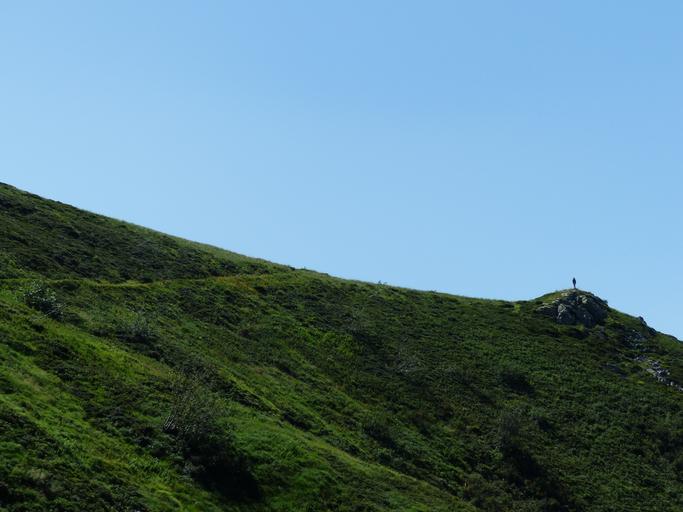 Keywords: person human woman man lonely alone leave on the go hike mountains mountain grassy slope trail maritime alps gta grande traversata delle alpi long distance trail alpine monte pianard