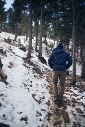 Keywords: trail path forest trees outdoor walking ice snow landscape hood jacket public domain publicdomain License: Public Domain Dedication (CC0) Source: Unsplash License: Public Domain Dedication (CC0) Source: Unsplash