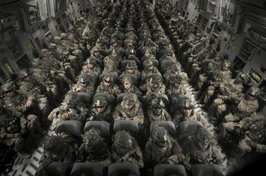 MAKE A MEME View Large Image personnel men women transport c-17 globemaster plane aircraft jet troops combat gear army military