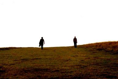 Keywords: persons people walking landscape outdoors meadow strolling pedestrians hiking