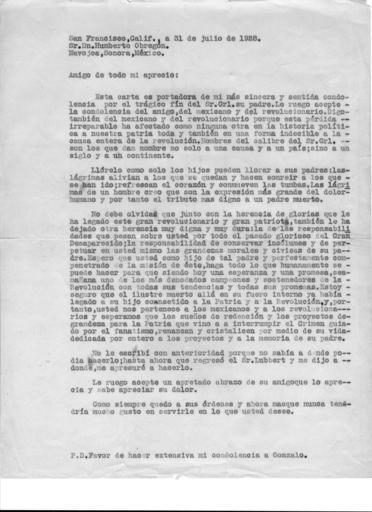 Keywords: Pesame Humberto Obregon.jpg es Carta a Humberto Obregon por motivo de la muerte de su padre Efrain Buenrostro Efrain Buenrostro 1928-07-31 own file Politicians of unidentified countries