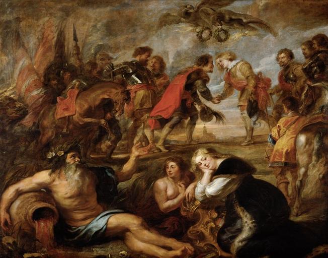 | Keywords: Peter Paul Rubens 121.jpg Artwork Creator Peter Paul Rubens 1634/1635 oil on canvas 328 x 388 cm Kunsthistorisches Museum Wien accession number Inv -Nr GG_525 credit line Abgebildete Personen Kaiser Ferdinand III Sohn des Ferdinand II von Habsburg Österreich Kardinalinfant Ferdinand Sohn des Philipp III von Habsburg Spanien object history 1682 Jan Gillis Antwerpen; Kurfürst Johann Wilhelm von der Pfalz; <br>1702 Geschenk des Kurfürsten an Kaiser Leopold I; <br>1730 in der Galerie nachweisbar http //bilddatenbank khm at/viewArtefact id 1635 PD-old-100 original upload log wikitable date/time username resolution size edit summary ---- 20 42 21 August 2008 User Gryffindor <a href http //upload wikimedia org/wikipedia/commons/b/ba/Peter_Paul_Rubens55 jpg ><img alt Thumbnail for version as of 20 42 21 August 2008 src http //upload wikimedia org/wikipedia/commons/thumb/b/ba/Peter_Paul_Rubens55 jpg/120px-Peter_Paul_Rubens55 jpg width 120 height 94 border 0 /></a></td><td>500×392 40 KB <nowiki> own <a href /wiki/User Gryffindor title User Gryffindor >Gryffindor</a> </nowiki> ---- 18 26 21 February 2007 User JoJan <a href http //upload wikimedia org/wikipedia/commons/archive/b/ba/20080821204242 21Peter_Paul_Rubens55 jpg ><img alt Thumbnail for version as of 18 26 21 February 2007 src http //upload wikimedia org/wikipedia/commons/thumb/archive/b/ba/20080821204242 21Peter_Paul_Rubens55 jpg/120px-Peter_Paul_Rubens55 jpg width 120 height 98 border 0 /></a></td><td>452×369 117 KB <nowiki> The Habsburg Meeting at Nördlingen Sept 2 1634 between King Ferdinand of Hungary and Cardinal-Infante Ferdinand of Spain blond hair 1635 ; Kunsthistorisches Museum Vienna own photo 24 June 2006 </nowiki> Paintings of Cardinal-infante Ferdinand of Austria Ferdinand III Holy Roman Emperor 1630s paintings by Peter Paul Rubens History paintings by Peter Paul Rubens 1634 Paintings of the Battle of Nördlingen Allegorical paintings by Peter Paul Rubens 1634 Paintings by Rubens in the Kunsthistorisches Museum Eye contact in art Pouring in art 2 September 1634 Handshakes in art |