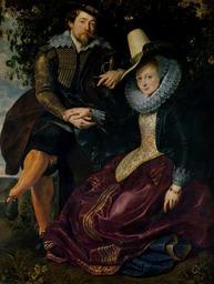 | Keywords: Peter Paul Rubens - Rubens en Isabella Brant in de Kamperfoelie Bower.jpg Artwork Creator Peter Paul Rubens Geißblatt Jelängerjelieber war als Treuesymbol bekannt die ineinandergelegten Hände dextrarum iunctio deuteten seit der Antike auf den Ehestand hin Jedoch sind diese Verweise völlig in die lebensnahe Momentaufnahme integriert Bürgerliche Zufriedenheit beachtlicher Wohlstand tiefe Zuneigung der Eheleute kommen in dem Bild zum Ausdruck Directly after his return from Italy the 32 year old Rubens married the 18 year old Isabella Brant This double portrait which broke new ground in portrait painting was purportedly done shortly thereafter Rubens did not however give up using traditional symbolism Honeysuckle was a well known symbol for faithfulness and hands laid over one another dextrarum iunctio have symbolized matrimony since ancient times However these references are integrated into this snapshot-like scene in which middle-class contentedness substantial affluence and strong affection are expressed <ref>http //wayback archive org/web/20110606170051/http //www pinakothek de/peter-paul-rubens/rubens-und-isabella-brant-der-geissblattlaube Bayerische Staatsgemäldesammlungen</ref> reflist ca 1609/1610 Oil canvas panel cm 178 136 5 Institution Alte Pinakothek VII http //wayback archive org/web/20110606170051/http //www pinakothek de/peter-paul-rubens/rubens-und-isabella-brant-der-geissblattlaube Bayerische Staatsgemäldesammlungen object history Aus der Düsseldorfer Galerie credit line accession number 334 84030 PD-old-100 Honeysuckle Bower by Peter Paul Rubens 01 |