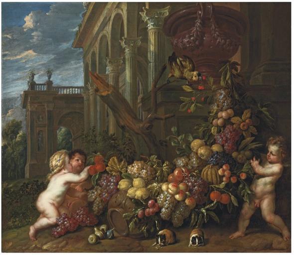 | Keywords: Peter Ykens and Jan Pauwel Gillemans - An architectural capriccio with putti around a swag of fruit, with a parrot and guineau pig.jpg Artwork Creator Peter Ykens and Creator Jan Pauwel Gillemans II en An architectural capriccio with putti around a swag of fruit with a parrot and guineau pig 1671 - 1695 http //www christies com/lotfinder/paintings/peter-ykens-and-jan-pauwel-gillemans-5221833-details aspxww lukasweb be/en/photo/bloemenkrans-als-omlijting-van-de-heilige-familie-0 Oil canvas size cm 61 69 8 object history credit line signed 'P YKENS' lower right Sold at Christie's 8 July 2009 London lot 173 accession number PD-old-100 PD-old-100 Peter Ykens Jan Pauwel Gillemans II 17th-century oil on canvas paintings |
