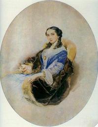 | Keywords: Petrovo–Solovovo by Sokolov.jpg ru Евдокия Васильевна Сухово-Кобылина 1819 1896 сест а д амату га А В Сухово-Кобылина с 1844 года жена Ф Пет ово-Соловово скан Creator Pyotr Fyodorovich Sokolov 1847 Female portraits by Pyotr Fyodorovich Sokolov House of Sukhovo-Kobylin House of Petrovo Solovovo 1840s portraits of Russia female PD-old-100 |