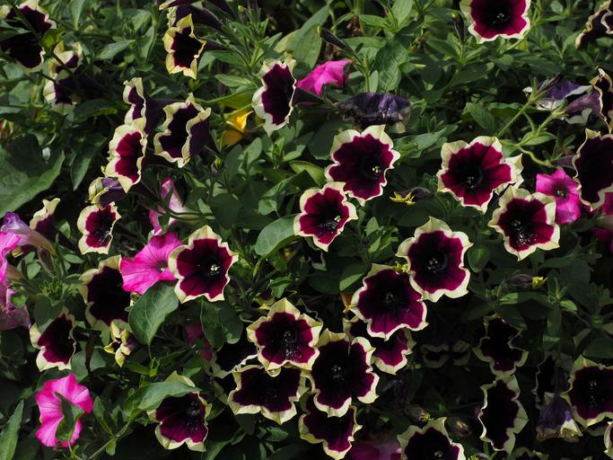 Keywords: petunia flower blossom bloom white dark purple red flowers nachtschattengewächs solanaceae garden petunia hybrid ornamental plant balcony plant hanging petunia container plant