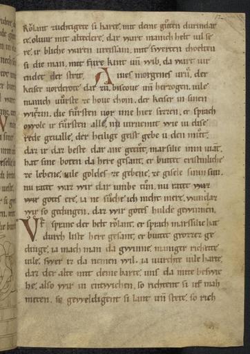| Keywords: Pfaffe Konrad - Rolandslied - cod. pal. germ. 112 - 025.jpg Pfaffe Konrad - Rolandslied - cod pal germ 112 - jpg 024 026 Rolandslied des Pfaffen Konrad à bersetzung bzw Bearbeitung der altfranzösischen Chanson de Roland um 1100 Blatt 12r Pfaffe Konrad Rolandslied Pergament 123 Blatt 21x15 cm Regensburg/Hessen-Thüringen Ende 12 Jahrhundert Cod pal germ 112 Universitätsbibliothek Heidelberg http //diglit ub uni-heidelberg de/diglit/cpg112 century 12 Pfaffe Konrad PD-old Rolandslied Cod Pal germ 112 |