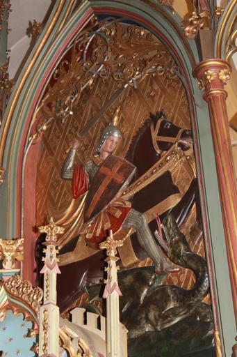 Keywords: Pfarrkirche Stall - Hochaltar1.JPG Denkmalgeschütztes Objekt Österreich 63370 Stall Kirche von Stall own Raul de Chissota 2011-09-01 PD Kirche in Stall - Hochaltar Saint-George-sculptures in Carinthia