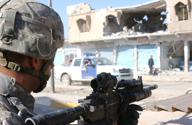 | Keywords: Pfc. Kevin L. White Watches as Vehicles Carrying Iraqi Police Forces Pass DVIDS10605.jpg en 051003-A-7186W-001 - Pfc Kevin L White an infantryman with Company D 2nd Battalion 325th Airborne Infantry Regiment 82nd Airborne Division watches as vehicles carrying Iraqi police forces pass his unit's position on a street in Tall Afar Iraq Oct 3 2005 U S Army photo by Pfc James Wilt 2005-10-03 Staff Sgt James Wilt https //www dvidshub net/image/10605 10605 2005-10-04 16 14 TAL AFAR IQ PD-USGov 82nd Airborne Division Images from DoD uploaded by Fæ Tal Afar in the Iraq War |