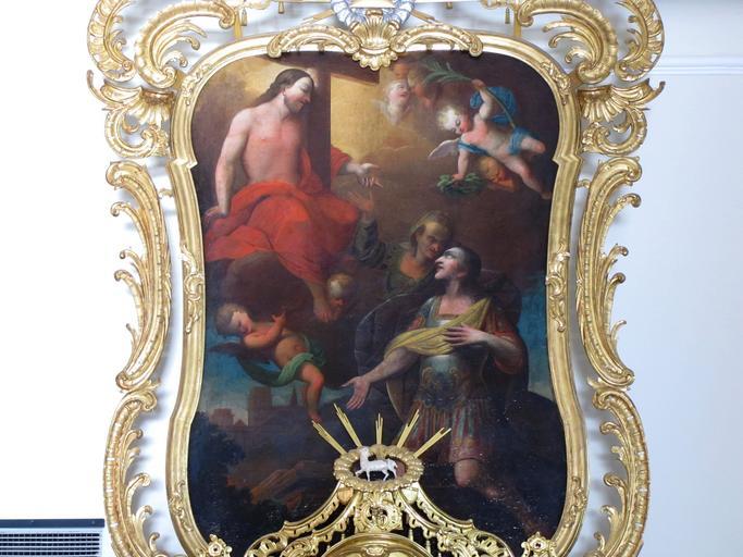 Keywords: Pfettisheim StSymphorien 10.JPG Alsace Bas-Rhin Pfettisheim Eglise St Symphorien Tableau St Symphorien d'Autun XVIIIe-XIXe own 2012 Ralph Hammann Cc-zero Artwork / Œuvre d'art / Kunstwerk Artist Saint Symphorien en soldat est représenté aux pieds du Christ accompagné de sa mère qui l'exhorte à ne pas abjurer sa foi Dans le fond est représentée une ville Autun Cadre à motifs rocaille XVIIIe-XIXe siècles oil canvas 180 cm de large Eglise St Symphorien Pfettisheim IM67009882 object history other versions Ralph Hammann PD-old accession number Interior of Église Saint-Symphorien de Pfettisheim Church paintings in Bas-Rhin Photographs of Pfettisheim by Ralph Hammann Taken with Canon PowerShot SX20 IS 18th-century church paintings in Alsace 19th-century church paintings in Alsace Symphorian Neoclassical church paintings in Alsace Paintings of putti in France 19th-century paintings of putti |
