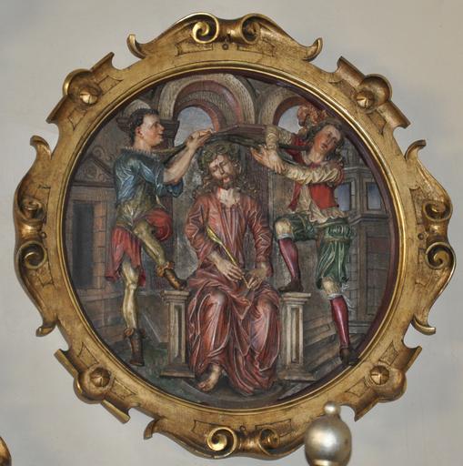 Keywords: Pfullendorf Rosenkranzmedaillon 08.jpg Pfullendorf Stadtkirche St Jakob<br />Rosenkranzmedaillons von Martin Zürn 1615 teilweise um 1900 ersetzt own own photograph 2012-09 Creator Martin Zürn Photo Andreas Praefcke Photos by User AndreasPraefcke Rosenkranzmedaillons Stadtkirche Pfullendorf Sculptures of Jesus Christ being crowned with thorns |
