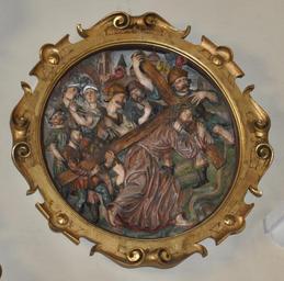 Keywords: Pfullendorf Rosenkranzmedaillon 09.jpg Pfullendorf Stadtkirche St Jakob<br />Rosenkranzmedaillons von Martin Zürn 1615 teilweise um 1900 ersetzt own own photograph 2012-09 Creator Martin Zürn Photo Andreas Praefcke Photos by User AndreasPraefcke Rosenkranzmedaillons Stadtkirche Pfullendorf Reliefs of Jesus Christ bearing the Cross