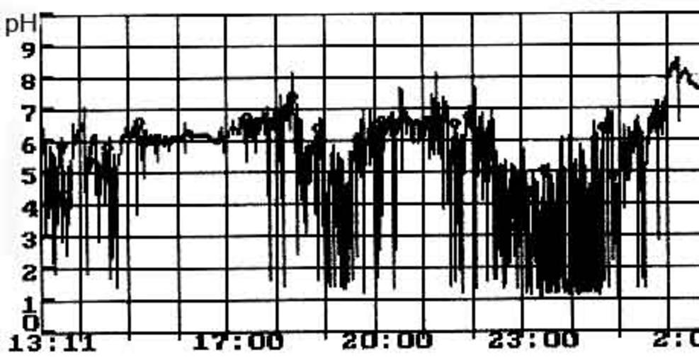 Keywords: PH-gramm with GERD.jpg ru Ф агмент суточной -г аммы пищевода больного с гаст оэзофагеальной ефлюксной болезнью Own Miheev 2008-07-24 Gastroenterology Medical tests