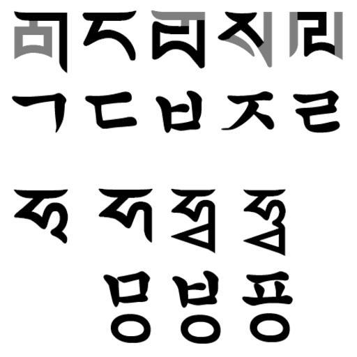 | Keywords: Phagspa-Hangul comparison.png Phagspa-Hangul comparison svg From en Image Phagspa-Hangul_comparison png Top The Phagspa letters k t p s l and their Hangul counterparts g t b j l k t p ts l Note the lip on both t's Bottom The derivation of Phagspa w v f from variants of the letter h plus a subscript w and the analogous composition of hangul w v f from variants of the letter p plus a circle Although not reflected in this font the original 蒙古字韻 Měnggǔ Zìyùn shows rounder bottoms for the v and f than for the w Korean writing Phagspa script |