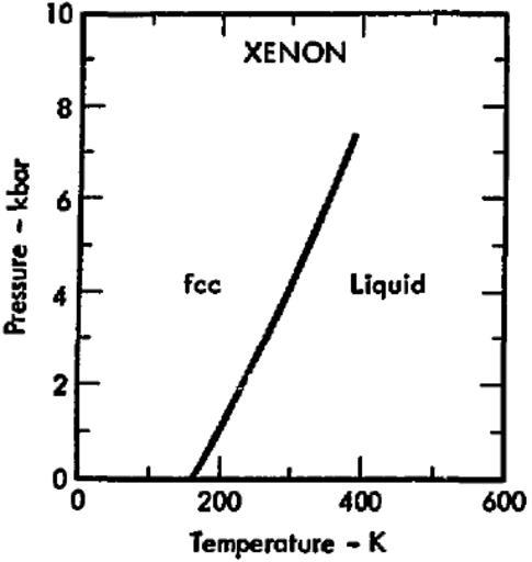 | Keywords: Phase diagram of xenon (1975).png en These 1975 phase diagrams are generally incomplete reaching at most 250 kbar 25 GPa and thus lacking many high-pressure metallic phases Taken from Phase Diagrams of the Elements David A Young UCRL-51902 Prepared for the U S Energy Research Development Administration under contract No W-7405-Eng-48 From the document DISTRIBUTION OF THIS DOCUMENT IS UNLIMITED ; printed copies were available from the w National Technical Information Service http //www osti gov/bridge/servlets/purl/4010212-0BbwUC/4010212 pdf David A Young 1975-09-11 Phase diagrams PD-USGov |