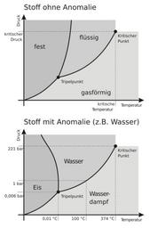 Keywords: Phasendiagramme.svg Die Abbildung zeigt die schematischen Phasendiagramme eines Stoffes ohne Dichteanomalie oben und des Wassers de File Phasendiagramme png http //resources jwidmer de/wikipedia/Phasendiagramme cdr 2005-01-15 de Benutzer JoWi Phasendiagramme en svg translation possible JoWi Water phase diagrams |