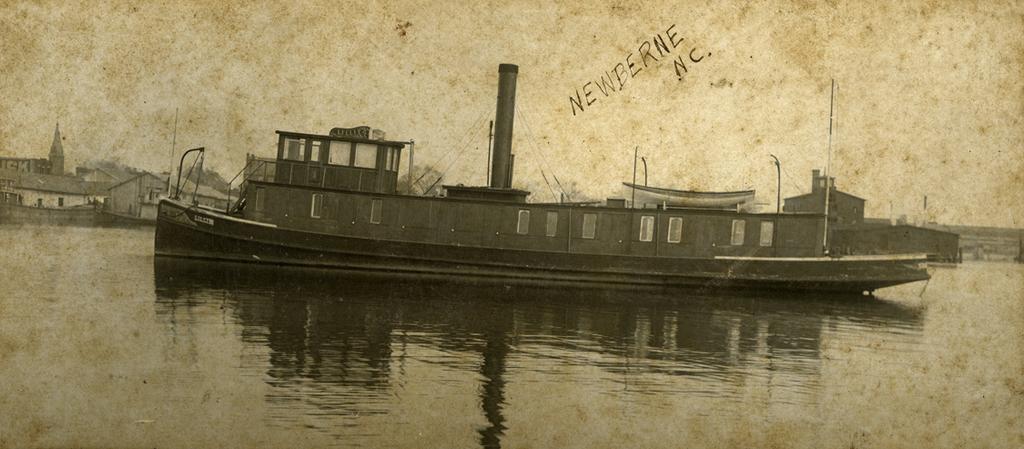 Keywords: new bern (n.c. newbernnc tug boats tugboats monochrome water river outdoor landscape Tug boat "Lillie" in New Bern, NC, early 1900s. From the Dughi Family Photo Collection, PhC.166, North Carolina State Archives, Raleigh, NC. Tug boat "Lillie" in New Bern, NC, early 1900s. From the Dughi Family Photo Collection, PhC.166, North Carolina State Archives, Raleigh, NC. |