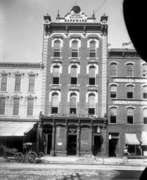 Keywords: blackandwhite monochrome building architecture outdoor black and white Briggs Hardware building at 220 Fayetteville Street, Raleigh. Macabbee Club, Bridgers Tailor, and Dughi Ice Cream ad in lower right corner. No date; estimated 1910 (8"x10" glass plate negative). From the J. C. Knowles Photograph Collection, State Archives of North Carolina, Raleigh, NC. Briggs Hardware building at 220 Fayetteville Street, Raleigh. Macabbee Club, Bridgers Tailor, and Dughi Ice Cream ad in lower right corner. No date; estimated 1910 (8"x10" glass plate negative). From the J. C. Knowles Photograph Collection, State Archives of North Carolina, Raleigh, NC. |