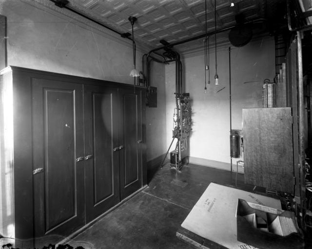Keywords: blackandwhite monochrome alley black and white Unidentified interior with electrical equipment. No date; estimated 1915 (8"x10" glass plate negative). From the J. C. Knowles Photograph Collection, State Archives of North Carolina, Raleigh, NC. Unidentified interior with electrical equipment. No date; estimated 1915 (8"x10" glass plate negative). From the J. C. Knowles Photograph Collection, State Archives of North Carolina, Raleigh, NC. |