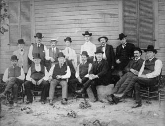 Keywords: blackandwhite monochrome people sport team sport black and white Unidentified Group of Adults, unspecified location; ca 1900 -1905. 13 men and one woman pose in front of a frame structure. Note: photograph has water damage and is fused to a pane of glass. From the Wayne County Schools Photo Collection, PhC.209, State Archives of North Carolina, Raleigh, NC. Unidentified Group of Adults, unspecified location; ca 1900 -1905. 13 men and one woman pose in front of a frame structure. Note: photograph has water damage and is fused to a pane of glass. From the Wayne County Schools Photo Collection, PhC.209, State Archives of North Carolina, Raleigh, NC. |