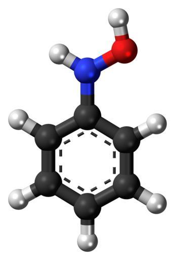 | Keywords: Phenylhydroxylamine 3D ball.png Ball-and-stick model of the phenylhydroxylamine molecule Colour code 505050 Carbon C black<br> F0F0F0 Hydrogen H white<br> F51E1E Oxygen O red<br> 3C50FA Nitrogen N blue<br> 2011-06-15 own DS Visualizer Jynto talk Space-filling version cc-zero Hydroxylamines Phenyl compounds Images by Jynto |