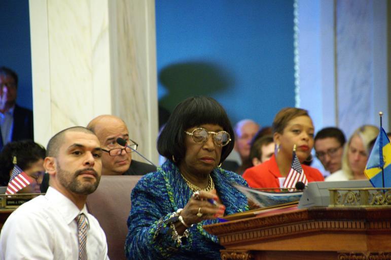 | Keywords: philadelphia city council philadelphiacitycouncil philadelphia marian tasco mariantasco cindy bass cindybass people groupshot Photos from the Stated Meeting of Philadelphia City Council held on Thursday, December 10, 2015, the final Council meeting of this term. On the agenda, bills including: a cable franchise renewal with Comcast, two zoning bills regarding a South Philly casino/hotel, a vehicle registration fee designed to fund street calming efforts. Also, a visit from outgoing Philadelphia Mayor Michael A. Nutter, farewells to the three Council Members departing after this term: Marian Tasco (9th District), Wilson Goode, Jr. and Dennis O'Brien (At Large). Photos by Samar Jha/PHL Council Fellow. Photos from the Stated Meeting of Philadelphia City Council held on Thursday, December 10, 2015, the final Council meeting of this term. On the agenda, bills including: a cable franchise renewal with Comcast, two zoning bills regarding a South Philly casino/hotel, a vehicle registration fee designed to fund street calming efforts. Also, a visit from outgoing Philadelphia Mayor Michael A. Nutter, farewells to the three Council Members departing after this term: Marian Tasco (9th District), Wilson Goode, Jr. and Dennis O'Brien (At Large). Photos by Samar Jha/PHL Council Fellow. |