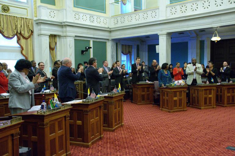 | Keywords: philadelphia city council philadelphiacitycouncil philadelphia Photos from the Stated Meeting of Philadelphia City Council held on Thursday, December 10, 2015, the final Council meeting of this term. On the agenda, bills including: a cable franchise renewal with Comcast, two zoning bills regarding a South Philly casino/hotel, a vehicle registration fee designed to fund street calming efforts. Also, a visit from outgoing Philadelphia Mayor Michael A. Nutter, farewells to the three Council Members departing after this term: Marian Tasco (9th District), Wilson Goode, Jr. and Dennis O'Brien (At Large). Photos by Samar Jha/PHL Council Fellow. Photos from the Stated Meeting of Philadelphia City Council held on Thursday, December 10, 2015, the final Council meeting of this term. On the agenda, bills including: a cable franchise renewal with Comcast, two zoning bills regarding a South Philly casino/hotel, a vehicle registration fee designed to fund street calming efforts. Also, a visit from outgoing Philadelphia Mayor Michael A. Nutter, farewells to the three Council Members departing after this term: Marian Tasco (9th District), Wilson Goode, Jr. and Dennis O'Brien (At Large). Photos by Samar Jha/PHL Council Fellow. |