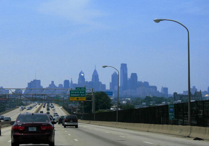 Keywords: PhiladelphiaPA.JPG Philadelphia Pennsylvania USA Taken from I-95 southbound just before Exit 23 own 2010-07-05 Guoguo12 Interstate 95 in Philadelphia Pennsylvania Road sign gantries in Pennsylvania