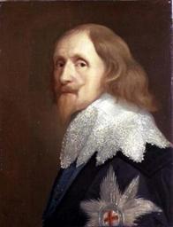 | Keywords: people portrait Philip Herbert, 4th Earl of Pembroke, 1st Earl of Montgomery KG (16 October 1584 – 23 January 1649) was an English courtier and politician active during the reigns of James I and Charles I. Philip Herbert and his older brother William Herbert, 3rd Earl of Pembroke were the 'incomparable pair of brethren' to whom the First Folio of Shakespeare's collected works was dedicated in 1623. Born at Wilton House, he was the son of Henry Herbert, 2nd Earl of Pembroke and his second wife, Mary Sidney, sister of Sir Philip Sidney the poet, after whom he was named. In 1593, at age 9, Philip was sent to study at New College, Oxford, but left after a few months. In 1600, the 16-year-old Philip made his first appearance at James I's court, and soon caught the king's eye. Many historians believe that James I was a homosexual, and he certainly lavished both power and wealth on a series of favourites. According to both Edward Hyde, 1st Earl of Clarendon and John Aubrey, Philip's major interests at this time were hunting and hawking and it was in this capacity that he first attracted the king's attention. In May 1603, James made Philip a gentleman of the privy chamber; and made him a Knight of the Bath in July of that year. In 1604, at James I's enthusiastic urging (he played a prominent role in the ceremony and provided generous financial gifts for the bride), Philip married Susan de Vere, daughter of Edward de Vere, 17th Earl of Oxford. James continued bestowing favours throughout 1605, first making Philip a gentleman of the bedchamber and then creating him Baron Herbert of Shurland and Earl of Montgomery. In addition, James had Montgomery created MA during a visit of Oxford. In addition to hunting and hawking, during this period Montgomery regularly participated in tournaments and court masques. He also took an interest in gambling and amassed considerable debts which James paid off for him in 1606/07. In 1608, James made him a Knight of the Garter; and had him appointed high steward of Oxford in 1615. When Montgomery had a prominent quarrel with Henry Wriothesley, 3rd Earl of Southampton following a game of tennis between the two in 1610, James stepped in to effect a reconciliation. Montgomery had a second violent quarrel, this time with Lord Howard de Walden, in 1617. Montgomery took a keen interest in English colonial ventures, which were just taking off at this time, and was involved with several joint stock companies: he became a member of the council of the Virginia Company in 1612; was one of the original incorporators of the Northwest Passage Company in 1612; and became a member of the Honourable East India Company in 1614. Honours continued throughout the remainder of James' reign, with Montgomery being made keeper of the Palace of Westminster and St James's Park in 1617; Lord Lieutenant of Kent in 1624; and finally, in December 1624, a member of the privy council. Following Charles I's accession to the throne in 1625, Montgomery continued to receive royal favour. He was appointed to the embassy which accompanied Henrietta Maria from Paris to England and went on to hold the spurs at Charles' coronation in 1626, before succeeding his older brother as Lord Chamberlain. He was made Lord Lieutenant of Buckinghamshire in 1628. (Montgomery was a friend of George Villiers, 1st Duke of Buckingham, serving as godfather of Buckingham's son Lord Charles Herbert, and in 1626 agreeing to a betrothal between his 4-year-old daughter and Lord Charles Herbert.) Montgomery continued to be interested in colonial ventures under Charles I. He was an incorporator of the Guiana Company in 1626. In 1628, he received a grant of the islands of Trinidad, Tobago, and Barbados. Montgomery's first wife died in early 1629, and in 1630 he re-married, to Lady Anne Clifford, daughter of George Clifford, 3rd Earl of Cumberland and widow of Richard Sackville, 3rd Earl of Dorset. Montgomery's older brother died in 1630, and he succeeded to the title of Earl of Pembroke, as well as several of his brother's other titles, including Lord Lieutenant of Somerset and Lord Lieutenant of Cornwall. He was quickly appointed to his brother's former positions of high steward of the Duchy of Cornwall and Lord Warden of the Stannaries. Pembroke maintained a large of household of 80 at his home in London, and an even larger staff of over 150 at Wilton House, his family's ancestral seat in Wiltshire. Throughout the 1630s, Pembroke entertained Charles I at Wilton House for a hunting expedition every year. Charles encouraged Pembroke to rebuild Wilton House in the Palladian style, recommending Inigo Jones for the job (Salomon de Caus performed the work when Jones proved to be unavailable, while his brother, Isaac de Caus, designed a variety of formal and informal gardens for the property). Although Pembroke and Charles bonded over their shared interest in art and architecture, they did not see eye to eye on the question of religion. Pembroke was inclined to favour "godly Protestantism" and was sympathetic to Puritanism. This led him into conflicts with Charles' queen, Henrietta Maria, who was a Roman Catholic. Pembroke was also opposed to the ascent of William Laud, who was narrowly elected to Pembroke's older brother's old office of Chancellor of the University of Oxford in 1630, and who became Archbishop of Canterbury in 1633. Given this religious inclination, Pembroke was sympathetic to the Covenanters during the Bishops' Wars and strongly favoured peace. Pembroke served as Charles' commissioner during the negotiations with the Scots at Berwick and Ripon, where several of the Scots, notably the Earl of Rothes, believed that Pembroke was secretly in favour of the Scottish position. Pembroke, however, continued to profess his loyalty to Charles, though, along with Henry Rich, 1st Earl of Holland and William Cecil, 2nd Earl of Salisbury, he urged the king to accept the Scots' terms. The king, however, ordered Pembroke to