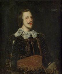 | Keywords: Philip IV King of Spain.jpg Workshop of Portrait of male otherdate c 1652 Oil on canvas cm 86 5 79 Institution Skoklosters slott Similar workshop versions in the collection of the Prado Museum Philip IV with a lion and in the collection of Charles Sedelmeyer both dated 1652 object history < 1655 transfer John II Casimir of Poland Warsaw ProvenanceEvent 1655 transfer Carl Gustaf Wrangel 24197 3176 emuseumplus lsh se other versions PD-old-100 DEFAULTSORT 1652; Philip IV by Velazquez Velazquez's workshop Portraits in the Skokloster Castle Portraits from the Polish Vasa Collection Philip IV by Velazquez 1652 oil on canvas paintings Portrait 1652 portrait paintings Male 17th-century men looking at viewer in art 17th-century oil portraits of men at half length in armour 17th-century portrait paintings in Sweden Collar of the Order of the Golden Fleece in portrait paintings Lace collars in art Portrait paintings of bearded men Three-quarter view portrait paintings of men facing right |
