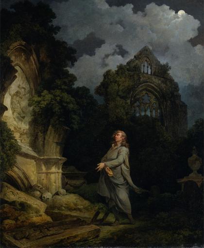 Keywords: Philippe-Jacques de Loutherbourg - Visitor to a Moonlit Churchyard - Google Art Project.jpg No inscription Inscription _Signed_and_Dated Signed and dated lower left to lower center P De Loutherbourgh 1790 Not on View Oil on canvas Picturesque the Sublime the clouds night Romantic man death skulls skeleton components arch grave theater ruins churchyard costume sarcophagus fresco bust genre subject landscape urn relief sculpture special url_id 7gEu5Gq41-fE7w PD-old-100-1923 1812 Google Art Project works by Philipp Jakob Loutherbourg d J Philipp Jakob Loutherbourg d J |