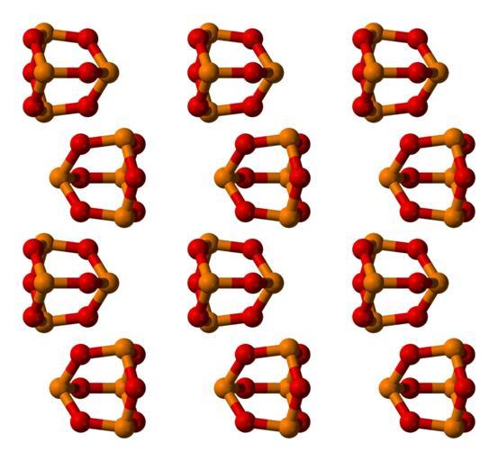| Keywords: Phosphorus-trioxide-xtal-3D-balls-B.png Ball-and-stick model of the packing of P<sub>4</sub>O<sub>6</sub> molecules in the crystal structure X-ray crystallographic data from cite journal Inorg Chem 23 26 1984 4486 “4488 10 1021/ic00194a017 Structural investigations on solid tetraphosphorus hexaoxide M Jansen M Moebs Model constructed in http //www crystalmaker com/ CrystalMaker 8 1 Image generated in http //accelrys com/products/discovery-studio/visualization/discovery-studio-visualizer html Accelrys DS Visualizer Own 2009-01-15 Ben Mills Benjah-bmm27 Images by Ben Mills Phosphorus trioxide Crystal structures of oxides |
