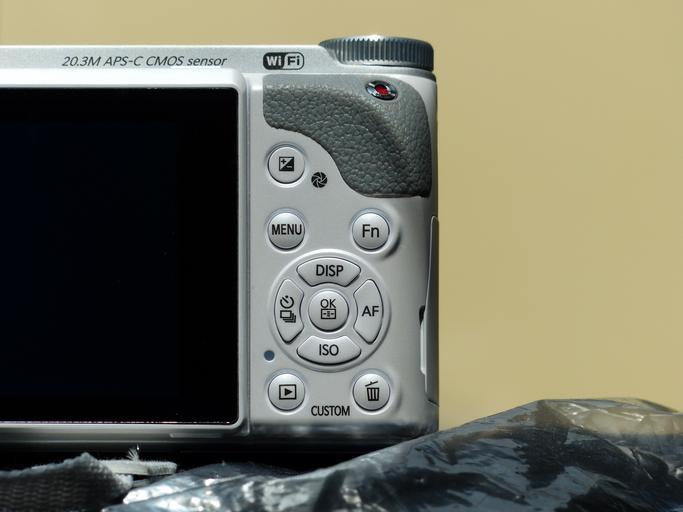 Keywords: photo camera operating elements navigation elements operation buttons back display monitor