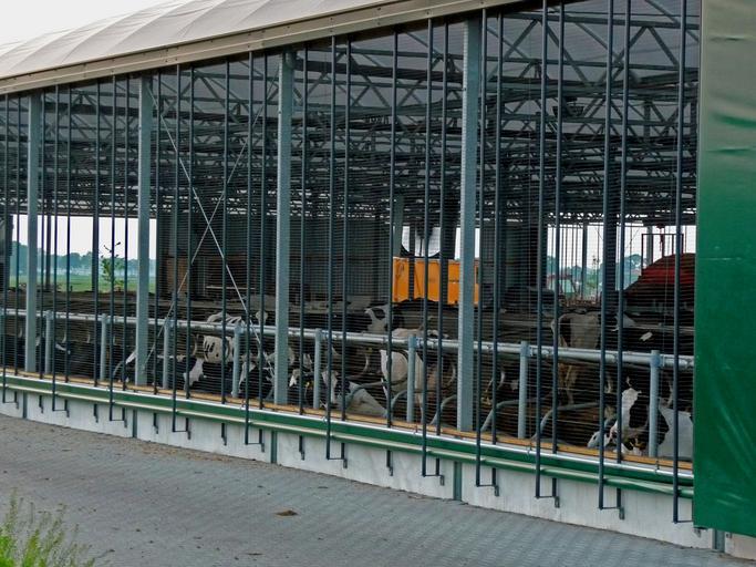 Keywords: Photo of cows in an open-air-cowshed at the Laaghalerveen peat ground; the Netherlands, FotoDutch, May 2012.jpg en photo of milk-cows in a modern high-tech open-air-cowshed at the Laaghalerveen peat-grounds near Hooghalen; modern agriculture of the Netherlands May 2012 “ These milk cows don't leave the stable any more for their whole life They have become real stable-cows nl een foto van een moderne high tech koeien-stal met een zeildak en gazen wanden Open-air Op het Laaghalerveen in Midden-Drenthe; Mei 2012 2012-05-22 22 22 51 own FotoDutch 52 925631 6 518914 cc-zero Uploaded with UploadWizard Cows in the Netherlands Cow stables in the Netherlands Factory farming Free run systems Hooghalen
