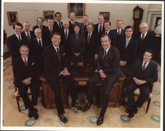 | Keywords: Photograph of 1981 Cabinet - Class Photo - NARA - 198510.tif Scope and content General notes 198510 Local identifier President 1981-1989 Reagan White House Photographic Office 1981 - 1989 Ronald Reagan Library NLRR 40 Presidential Drive Simi Valley CA 93065-0600 date 1981 02 04 - 1981 02 04 Record group Collection RR-WHPO White House Photographic Collection 01/20/1981 - 01/20/1989 Record group ARC 1192 Reagan White House Photographs compiled 01/20/1981 - 01/20/1989 documenting the period 1915 - 01/20/1989 Series ARC 198505 File unit File unit ARC Variant control numbers NAIL Control Number NLS-WHPO-A-C487 2 yes Other versions <gallery> File Photograph_of_1981_Cabinet_-_Class_Photo_-_NARA_-_198510 tif tif File Photograph_of_1981_Cabinet_-_Class_Photo_-_NARA_-_198510 jpg jpg </gallery> NARA-cooperation PD-USGov United States Cabinets 1981 NARA TIF images with categorized JPGs |
