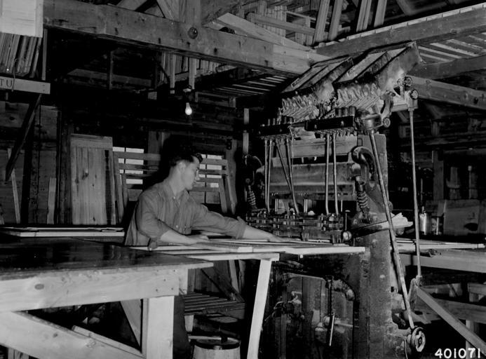 Keywords: Photograph of Automatic Nailing Machines - NARA - 2128851.jpg Scope and content Original caption Automatic nailing machines being used in assembling stoker packer frames for standard chassis Assembly line production is used crews of resaws cutting various pieces which converge to an assembly table where the pieces are assembled in wood frame and General notes 2128851 Local identifier 401071 Department of Agriculture Forest Service Region 9 Eastern Region 1965 - Most Recent <br /> Department of Agriculture Division of Forestry 1881 - 07/01/1901 Predecessor NARA-Place Chippewa National Forest Minn 4509445 <br /> NARA's Great Lakes Region Chicago NRDA 7358 South Pulaski Road Chicago IL 60629-5898 08/1940 Record group Record Group 95 Records of the Forest Service 1870 - 2008 Record group ARC 424 Historic Photographs compiled ca 1880 - ca 1970 Series ARC 1812856 File unit File unit ARC Variant control numbers Agency-Assigned Identifier 401071 Other versions <gallery> File Photograph_of_Automatic_Nailing_Machines_-_NARA_-_2128851 tif tif File Photograph_of_Automatic_Nailing_Machines_-_NARA_-_2128851 jpg jpg </gallery> NARA-cooperation PD-USGov USDA NARA images from the Dept of Forestry |