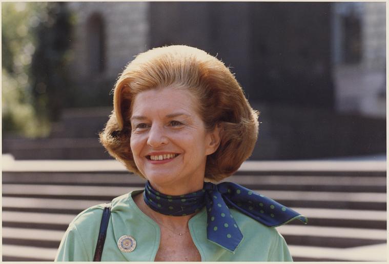 Keywords: Photograph of First Lady Betty Ford Meeting with the Media in Helsinki, Finland, During the Conference on Security... - NARA - 186815.tif This photograph depicts First Lady Betty Ford smiling wearing a purple and green scarf with a pin on the right lapel of her blouse The photograph is a head and shoulders close-up with stairs and a building in background General notes 186815 Local identifier GRF-WHPO-A5910 4A President 1974-1977 Ford White House Photographic Office 1974 - 1977 Schumacher Karl H Photographer 8451339 <br /> Institution Gerald R Ford Presidential Library Gerald R Ford Library NLGRF 1000 Beal Avenue Ann Arbor MI 48109-2114 1975-08-02 Record group Collection GRF-WHPO White House Photographic Office Collection Ford Administration 12/06/1973 - 01/20/1977 Record group ARC 1136 Gerald R Ford White House Photographs compiled 08/09/1974 - 01/20/1977 Series ARC 1756311 File unit File unit ARC Variant control numbers NAIL Control Number NLF-WHPO-A-A5910 4A yes Other versions Gerald R Ford Presidential Library and Museum-cooperation PD-USGov Betty Ford Portrait photographs of women smiling Gerald R Ford Presidential Library and Museum series Gerald R Ford White House Photographs compiled 08/09/1974 - 01/20/1977 |