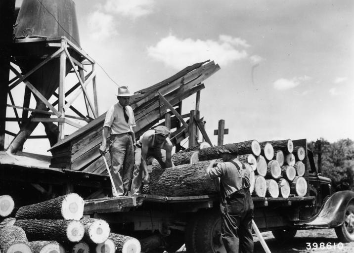 | Keywords: Photograph of Hickory Bolts Being Scaled - NARA - 2128685.jpg Scope and content Original caption Hickory bolts being scaled be the plant scaler as they are unloaded from the truck at the Paoli Handle Factory Paoli Ind General notes 2128685 Local identifier 398610 Department of Agriculture Forest Service Region 9 Eastern Region 1965 - Most Recent <br /> Department of Agriculture Division of Forestry 1881 - 07/01/1901 Predecessor NARA-Place Hoosier National Forest Ind 3711907 38 417 -86 5 <br /> NARA's Great Lakes Region Chicago NRDA 7358 South Pulaski Road Chicago IL 60629-5898 06/1940 Record group Record Group 95 Records of the Forest Service 1870 - 2008 Record group ARC 424 Historic Photographs compiled ca 1880 - ca 1970 Series ARC 1812856 File unit File unit ARC Variant control numbers Agency-Assigned Identifier 398610 Other versions <gallery> File Photograph_of_Hickory_Bolts_Being_Scaled_-_NARA_-_2128685 tif tif File Photograph_of_Hickory_Bolts_Being_Scaled_-_NARA_-_2128685 jpg jpg </gallery> NARA-cooperation PD-USGov USDA NARA images from the Dept of Forestry |