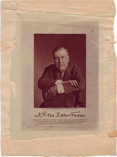 | Keywords: freemasonry fraternity newspaper publisher philanthropist toronto picture frame Portrait photograph of John Ross Robertson (1841-1918), Past Grand Master of the Grand Lodge of Canada in Ontario; Past Grand First Principal, Grand Chapter of R.A. Masons of Canada; Past Grand M. Gd. Council Royal Select Masters, Ontario. The photograph is mounted on linen. Date: 1910 Photographer: Engraved by the John C. Yorston Publishing Company Reference code: P27 Portrait photograph of John Ross Robertson (1841-1918), Past Grand Master of the Grand Lodge of Canada in Ontario; Past Grand First Principal, Grand Chapter of R.A. Masons of Canada; Past Grand M. Gd. Council Royal Select Masters, Ontario. The photograph is mounted on linen. Date: 1910 Photographer: Engraved by the John C. Yorston Publishing Company Reference code: P27 |