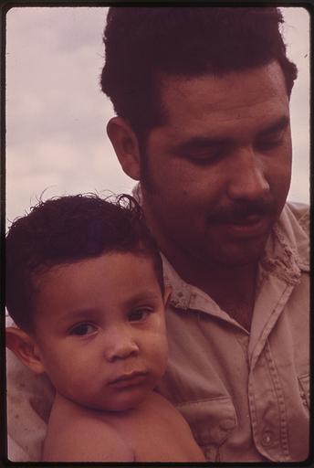 | Keywords: Photograph of a Migrant Father with His Young Son - NARA - 543866.jpg Scope and content Original caption Migrant father with young son This man and his family follow the crops north from Texas each year living in substandard housing and laboring all day for 2 00 an hour General notes 543866 Local identifier 412-DA-1373 Environmental Protection Agency 12/02/1970 - Still Picture Records Section Special Media Archives Services Division NWCS-S National Archives at College Park 8601 Adelphi Road College Park MD 20740-6001 06/1972 Record group Record Group 412 Records of the Environmental Protection Agency 1944 - 2006 Record group ARC 708 DOCUMERICA The Environmental Protection Agency's Program to Photographically Document Subjects of Environmental Concern compiled 1972 - 1977 Series ARC 542493 File unit File unit ARC Variant control numbers Agency-Assigned Identifier 023/53/001373<br /> NAIL Control Number NWDNS-412-DA-1373<br /> Other Identifier 07354<br /> This is the NARA Internal Exhibit Tracking Number for the Public Vaults exhibit <br /> Other versions <gallery> File Photograph_of_a_Migrant_Father_with_His_Young_Son_-_NARA_-_543866 tif tif File Photograph_of_a_Migrant_Father_with_His_Young_Son_-_NARA_-_543866 jpg jpg </gallery> NARA-cooperation PD-USGov Fathers and sons Migrant workers Two males |