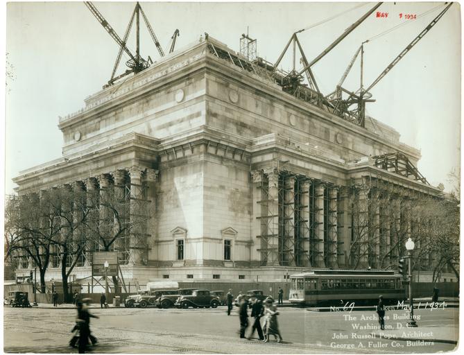 | Keywords: u.s. national archives usnationalarchives nara:arcid=7368457 nara building construction crane 1934 05/01/1934 05011934 john russell pope johnrussellpope george a. fuller co. georgeafullerco archives streetcar washington d.c. washingtondc cars national archives building nationalarchivesbuilding architecture outdoor Original Caption: Photograph of the National Archives Building Being Constructed, 05/01/1934 U.S. National Archives’ Local Identifier: 121-BCP-111C-69 From: Construction of Federal Buildings, compiled 1885 - 1954 Created By: General Services Administration. Public Buildings Service.(12/11/1949 - ) Production Date: 05/01/1934 Persistent URL: research.archives.gov/description/7368457 Repository: National Archives at College Park - Still Pictures (RD-DC-S) For information about ordering reproductions of photographs held by the Still Picture Unit, visit: www.archives.gov/research/order/still-pictures.html Reproductions may be ordered via an independent vendor. NARA maintains a list of vendors at www.archives.gov/research/order/vendors-photos-maps-dc.html Original Caption: Photograph of the National Archives Building Being Constructed, 05/01/1934 U.S. National Archives’ Local Identifier: 121-BCP-111C-69 From: Construction of Federal Buildings, compiled 1885 - 1954 Created By: General Services Administration. Public Buildings Service.(12/11/1949 - ) Production Date: 05/01/1934 Persistent URL: research.archives.gov/description/7368457 Repository: National Archives at College Park - Still Pictures (RD-DC-S) For information about ordering reproductions of photographs held by the Still Picture Unit, visit: www.archives.gov/research/order/still-pictures.html Reproductions may be ordered via an independent vendor. NARA maintains a list of vendors at www.archives.gov/research/order/vendors-photos-maps-dc.html |