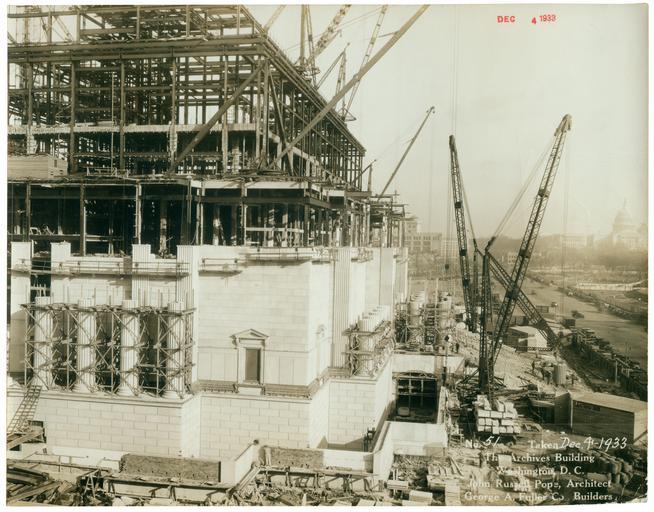 | Keywords: u.s. national archives usnationalarchives nara:arcid=7368458 archives nara building construction crane 1933 12/04/1933 12041933 united states capitol unitedstatescapitol capitol capitol building capitolbuilding john russell pope johnrussellpope george a. fuller co. georgeafullerco washington d.c. washingtondc national archives building nationalarchivesbuilding outdoor Original Caption: Photograph of the National Archives Building Being Constructed, 12/04/1933 U.S. National Archives’ Local Identifier: 121-BCP-111B-51 From: Construction of Federal Buildings, compiled 1885 - 1954 Created By: General Services Administration. Public Buildings Service.(12/11/1949 - ) Production Date: 12/04/1933 Persistent URL: research.archives.gov/description/7368458 Repository: National Archives at College Park - Still Pictures (RD-DC-S) For information about ordering reproductions of photographs held by the Still Picture Unit, visit: www.archives.gov/research/order/still-pictures.html Reproductions may be ordered via an independent vendor. NARA maintains a list of vendors at www.archives.gov/research/order/vendors-photos-maps-dc.html Original Caption: Photograph of the National Archives Building Being Constructed, 12/04/1933 U.S. National Archives’ Local Identifier: 121-BCP-111B-51 From: Construction of Federal Buildings, compiled 1885 - 1954 Created By: General Services Administration. Public Buildings Service.(12/11/1949 - ) Production Date: 12/04/1933 Persistent URL: research.archives.gov/description/7368458 Repository: National Archives at College Park - Still Pictures (RD-DC-S) For information about ordering reproductions of photographs held by the Still Picture Unit, visit: www.archives.gov/research/order/still-pictures.html Reproductions may be ordered via an independent vendor. NARA maintains a list of vendors at www.archives.gov/research/order/vendors-photos-maps-dc.html |