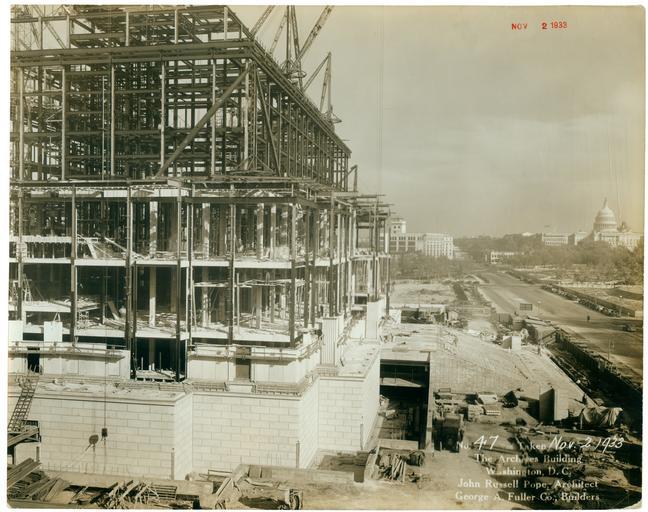 | Keywords: u.s. national archives usnationalarchives nara:arcid=7368459 nara archives building construction washington d.c. washingtondc john russell pope johnrussellpope george a. fuller co. georgeafullerco 1933 11/02/1933 11021933 crane capitol united states capitol unitedstatescapitol capitol building capitolbuilding national archives building nationalarchivesbuilding outdoor Original Caption: Photograph of the National Archives Building Being Constructed, 11/02/1933 U.S. National Archives’ Local Identifier: 121-BCP-111B-47 From: Construction of Federal Buildings, compiled 1885 - 1954 Created By: General Services Administration. Public Buildings Service.(12/11/1949 - ) Production Date: 11/02/1933 Persistent URL: research.archives.gov/description/7368459 Repository: National Archives at College Park - Still Pictures (RD-DC-S) For information about ordering reproductions of photographs held by the Still Picture Unit, visit: www.archives.gov/research/order/still-pictures.html Reproductions may be ordered via an independent vendor. NARA maintains a list of vendors at www.archives.gov/research/order/vendors-photos-maps-dc.html Original Caption: Photograph of the National Archives Building Being Constructed, 11/02/1933 U.S. National Archives’ Local Identifier: 121-BCP-111B-47 From: Construction of Federal Buildings, compiled 1885 - 1954 Created By: General Services Administration. Public Buildings Service.(12/11/1949 - ) Production Date: 11/02/1933 Persistent URL: research.archives.gov/description/7368459 Repository: National Archives at College Park - Still Pictures (RD-DC-S) For information about ordering reproductions of photographs held by the Still Picture Unit, visit: www.archives.gov/research/order/still-pictures.html Reproductions may be ordered via an independent vendor. NARA maintains a list of vendors at www.archives.gov/research/order/vendors-photos-maps-dc.html |